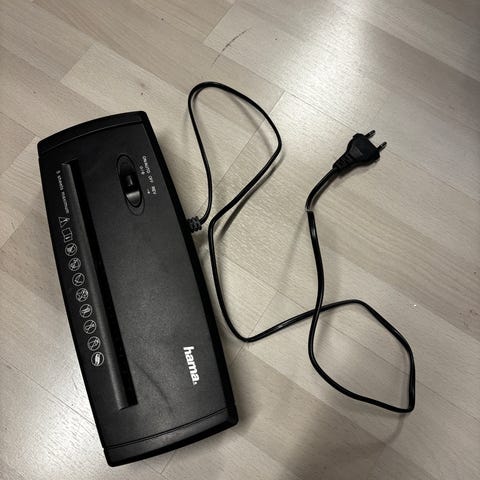 Hama-merkkinen paperisilppuri jolla voi silputa myös CD-levyjä ja maksukortteja. Käytetty muutaman kerran asiakirjojen silppuamiseen.