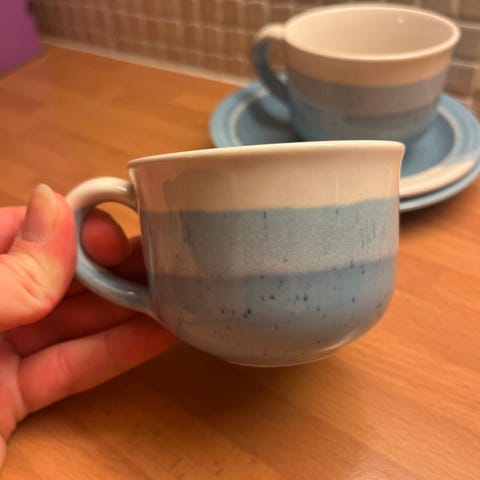 4 x vihreät Kultakeramiikan isohkot kupit ja aluset