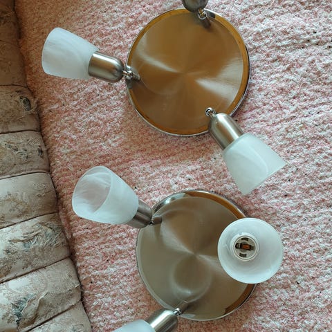 2 kpl kattovalaisimia. Toinen valo toimii, toiseen täytyisi vaihtaa muuntaja, jotta toimisi moitteettomasti (tällä hetkellä sammuu itsestään hetken käytön jälkeen).