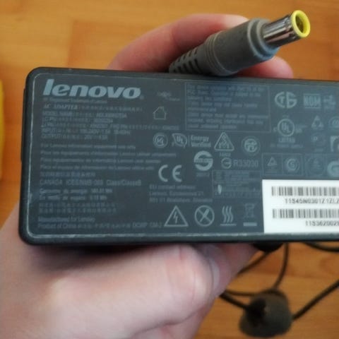 Lenovo laturi, tulo 100-240V 1,3A, lähtö 20V 2.25A.