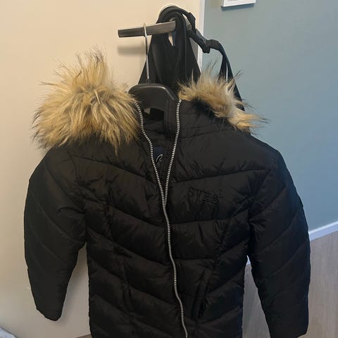 Svea lasten takki tytöille, koko 160. Takki on mustan värinen ja siinä on vetoketjukiinnitys sekä huppu, jossa tekoturkisreunus. Takissa on napeilla irroitettava huppu ja vetoketjulla irroitettava karva. Takin sisävuori on pehmeää materiaalia, joka tarjoaa lisälämpöä. Takissa on neljä etutaskua kaksi vetoketjullista ja kaksi magneettista. Sopii kylmiin sääolosuhteisiin. Takki on oikein hyvässä kunnossa ja sitä on käytetty vain yhden talven ajan.