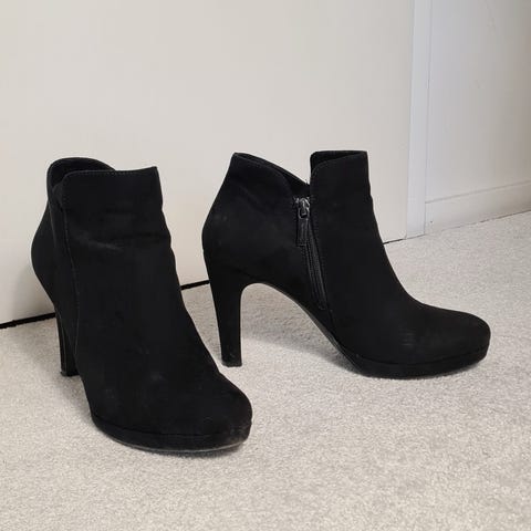 Myydään Tamariksen mustat Mokkaiset nilkkurit. Kultakoristeet ja takana vetoketju.