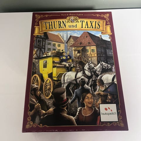 Saksankielinen versio, mutta englanninkieliset ohjeet tulostettu. Korteissa ja laudassahan ei tekstiä ole, vain pelilaatikossa.