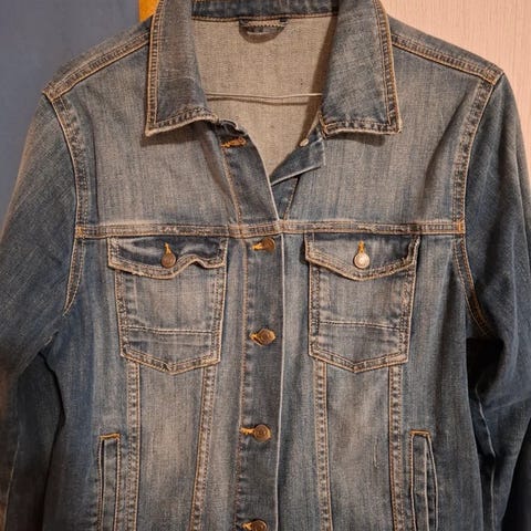 Denimsininen House farkkutakki. Koko D46/48, sopiva kuitenkin M- (väljempi tällöin) ja L-kokoisille. Napitettava, sivutaskut ilman napitusta. Käytetty max. kerran, jos edes sitäkään, joten kunnossa ei moittimista.
