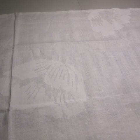 Kankaan tummansininen kuvio on painettu pellavanväriselle kankaalle.
