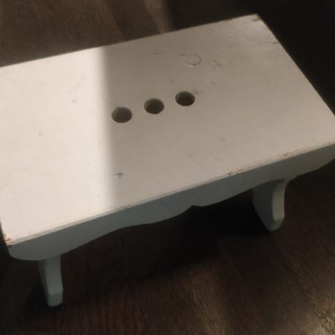 Tukeva jakkara/palli, leveys/syvyys 40/20cm, korkeus 23cm. Pinta täynnä kirjoitusta, jotka saa helposti hiottua pois tai maalattua päälle.