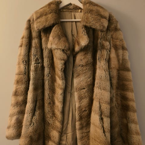 Vähällä käytöllä ollut kotimainen, upea aito turkki, imeisesti piisamia. Tarjouksia otetaan vastaan. Kuvan malli 170 cm ja n 60 kg.