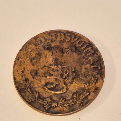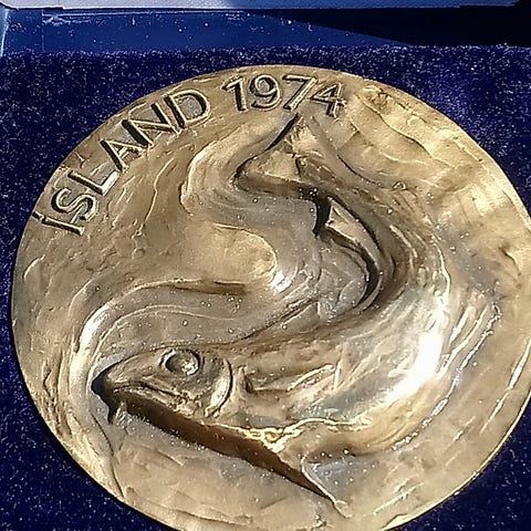 Norge 1975 -keräilymedaljonki, valmistettu pronssista. Pyöreä muoto, jossa on kaiverruksia ja reliefejä, jotka kuvaavat ihmishahmoja ja lintuja. Medallionissa on pieni reikä ripustamista varten.