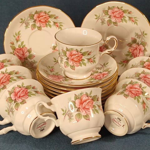 Englantilainen kahvisetti 6 kupit 6 lautasta 6leipalautasta