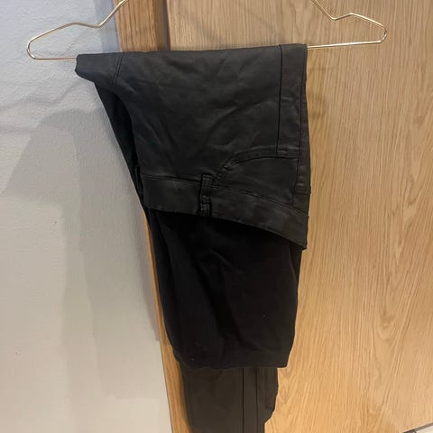 Mamalicious äitiysfarkut, musta, koko M. Housuja on kahdet samanlaiset. Hinta 5 €/kpl. Molempien housujen haarassa on hieman nukkaa.