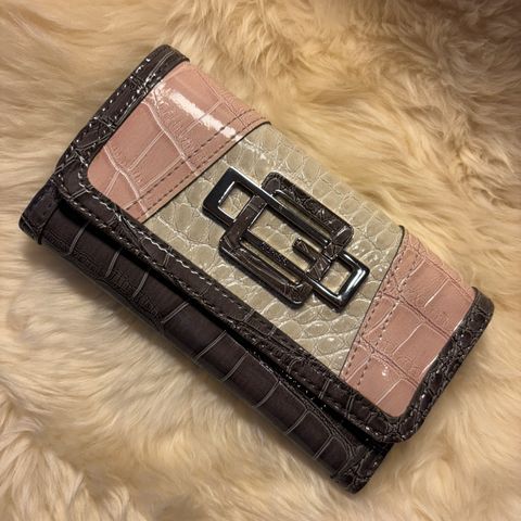 GUESS lompakko, väriltään pinkki/fuksia. Lompakossa on useita korttipaikkoja ja vetoketjutasku. Materiaalina tekonahka. Ostettu Guess Tukholman myymälästä.