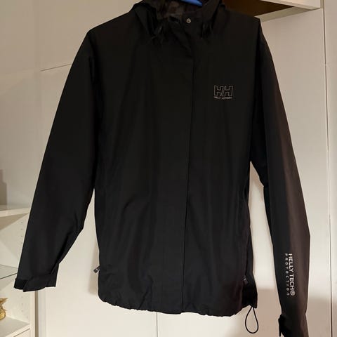 Musta Helly Hansen pitkä tuulitakki koko S. Ei virheitä. Vastaa kokoaan ja itse M kokoisena myös käytin tätä takkia. 🤍