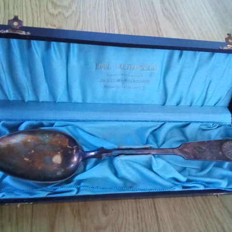 Kuvien antikki suolakko sekä siihen kuuluva lusikka. Materiaali kupronikkeliä. Korkeus 3,5cm, halkaisija 4cm