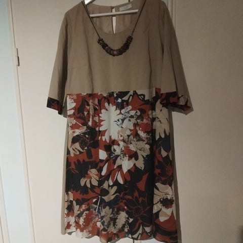 Myydään uusi, kaunis ja jopa juhlava mekko. Kauniit kullanväriset koristelut.
