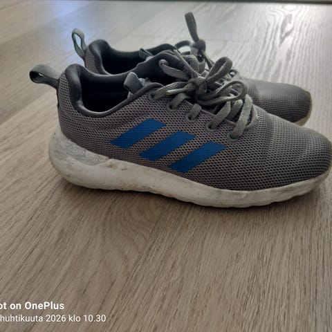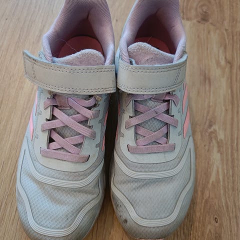 Adidas lastenkengät tytöille, koko 33. Väri valkoinen. Kenkien kiinnitys tapahtuu kolmella tarranauhalla. Kaksi kertaa kauppareissulla käytetty. Todella hyvässä kunnossa. Nouto Veikkola tai toridiili