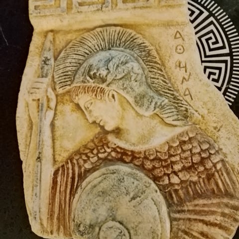 Alaosassa on sotilas kypärä ja korinttilainen pylväs