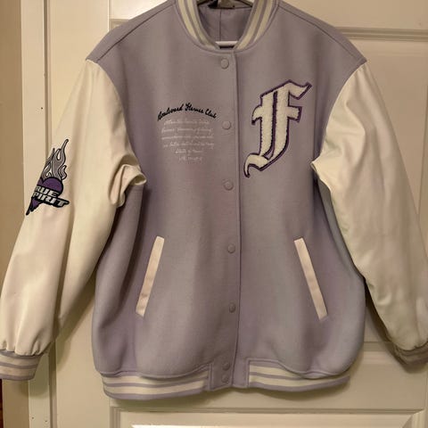 H&M Divided baseball-takki, koko M. Takissa musta väri, valmistettu polyesteristä ja muista materiaaleista. Takissa on keinonahkaiset hihat ja polyesterivuori. Sopii naisten käyttöön.