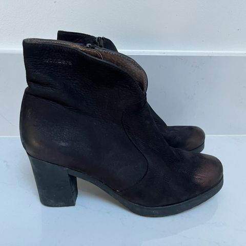 Wondersin nahkaiset nilkkurit, koko 38. Sivuissa vetoketjut, helppo laittaa jalkaan. Hyvä kunto, pientä nahan kulumaa. Nouto Espoo tai postitus (ostaja maksaa postikulut). MMM.