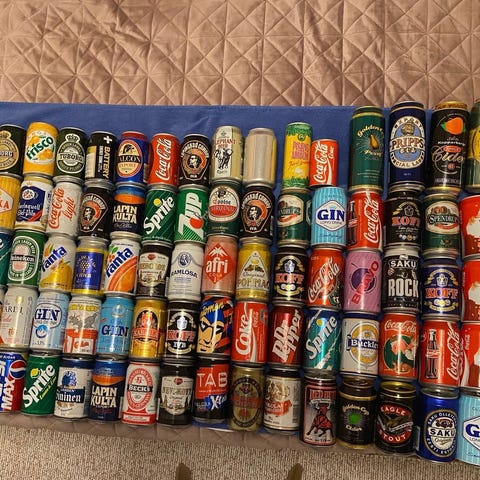 Erilaisia virvoitusjuoma/olut tölkki kokoelma