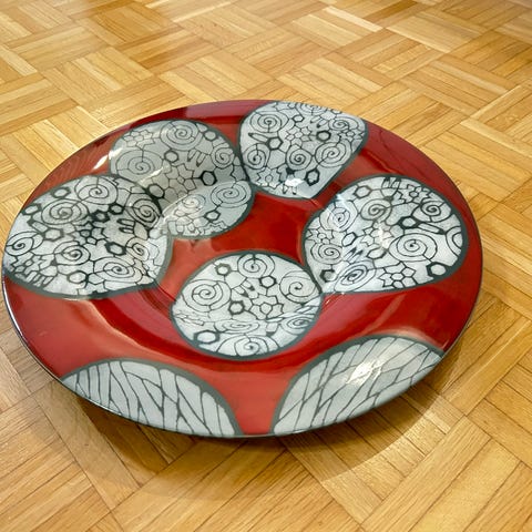 Myydään käyttämätön Pentik signeerattu studio tarjoilulautanen. Halkaisija 43 cm, syvennys 20 cm. Tehty ABB 125v juhliin. Vain nouto Vallinojalta. Myynnissä myös muualla.
