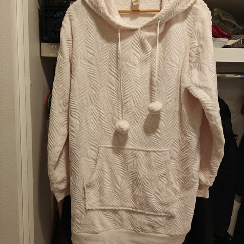 Vaaleanpunainen kukallinen huppari koko M