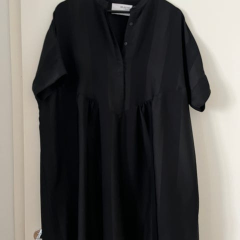 Myydään Selected femmen raidallinen mekko. Ruskeat raidat mustalla pohjalla. Koko 36. Vyötäröllä nauha somisteeksi. Niskassa pieni halkio ja koristenappi. 3/4 hihat, helmassa sivuilla lyhyet halkiot.