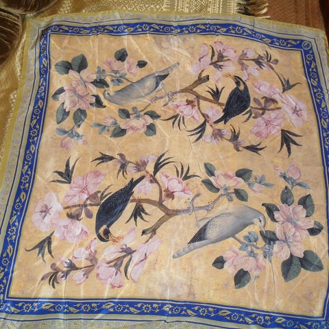 Silkkihuivi vihreä valkoinen, made in Italy. Koko: 50x52cm.