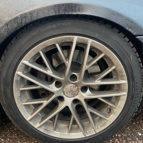 Pintaa suht hyvin jäljellä ja nastat suurin osa tallessa. Ollut bmw e46 alla.