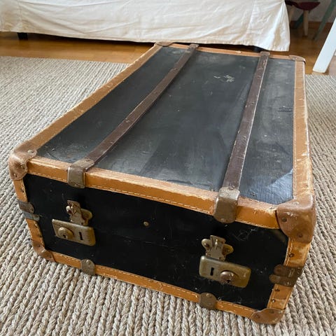 Hakusanat: säilytysarkku, matka-arkku, valurautainen matka-arkku, vintage matka-arkku, vintage säilytysarkku