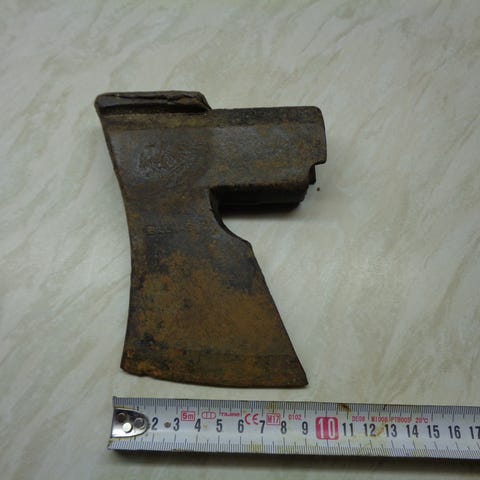 Hyväkuntoinen (pintaruostetta). Leimat näkyy.