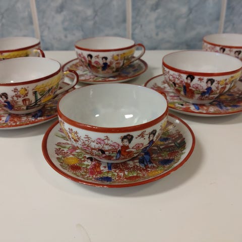 Kaunis itämainen, japanilainen ? teekuppi ja tassi yhteishintaan