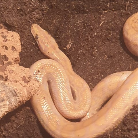 Upea nuori kuningasboakoiras, IMG het black eyed anery. Suomalaiselta kasvattajalta, syntynyt huhtikuussa 2024 ja alkuperätodistus löytyy. Tämän värimuodon boa tummuu iän myötä jokaisella nahanluonnilla ja on lopulta lähes pikimusta. On nyt jo tummunut selvästi verrattuna siihen millainen oli ihan poikasena. Jää hyvin todennäköisesti maltillisen kokoiseksi. Vanhemmat +/- 150cm pitkiä ja tämä yksilö on sieltä pienemmästä päästä. Luonteeltaan leppoisa ja helppo käsitellä, on hyvin rauhallinen käsittelyssä. Nahka on aina vaihtunut yhtenä sukkana ja koskaan ei ole ruuasta kieltäytynyt.