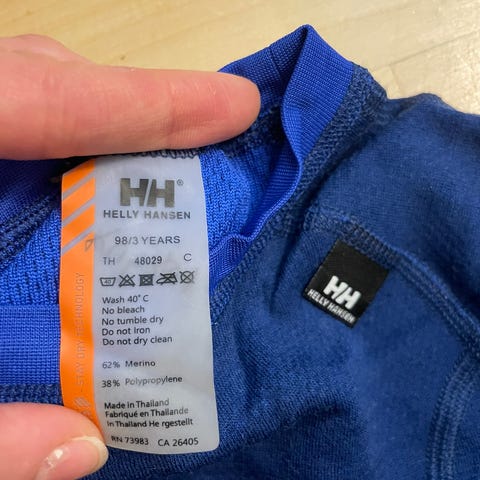 Joha-merkkinen merinovillapaita ja -housut kokoa 98/104. Pienet reiät paidassa ja housuissa, mutta korjattavissa tai voi hyvin käyttää näinkin.