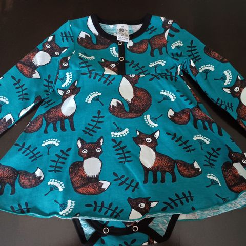 Vain settinä. Äidin tunikaa käytetty eniten , js siinä aavistus nukkaa kun oikein tarkkaan katsoo ja siniset kissankellot eivät ole yhtään kirkkaansiniset. Huomaa lähinnä kuin muut kissankello-vaatteet vieressä.