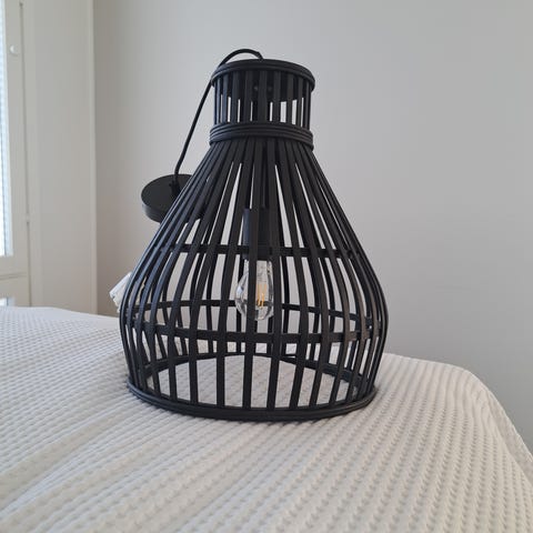 Hyväkuntoinen musta lastenhuoneen lamppu, zeepran ja apinan kuvalla