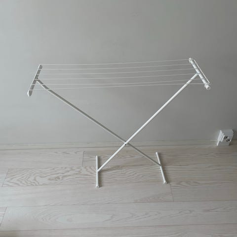 Kätevä pyykinkuivausteline, 30m kuivaustilaa. Täysin ehjä ja kunnossa, jäi vain tarpeettomaksi kuivurin myötä. Tarkemmat tiedot