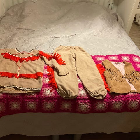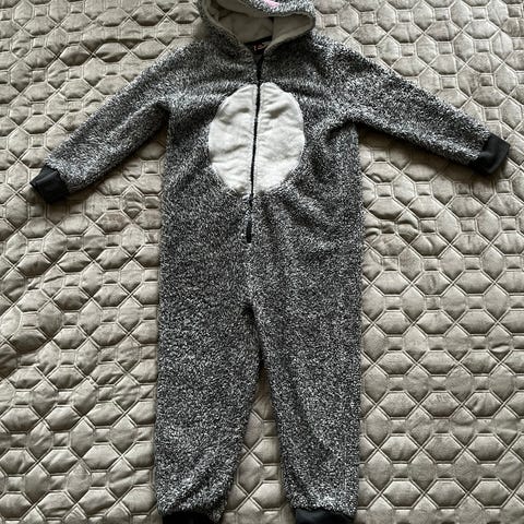 Vihreä liskopuku. Peuhu, koko 120. Pehmeä, sopii oloasuksi tai naamiaisiin. Kerran tai kaksi käytetty.