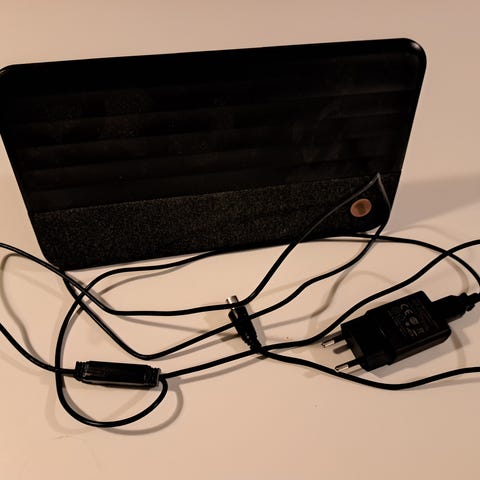 Antenni on ~9cm korkea, jalan halkaisija on ~3cm ja johdon pituus on ~2,02m