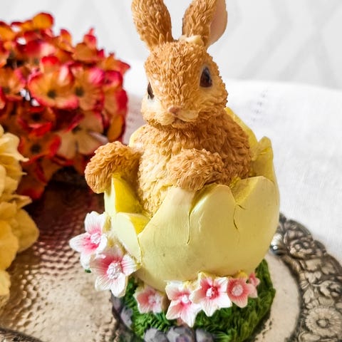 Ruskea-valkoinen pupu: korkeus n. 6 cm. Hinta 1 e.