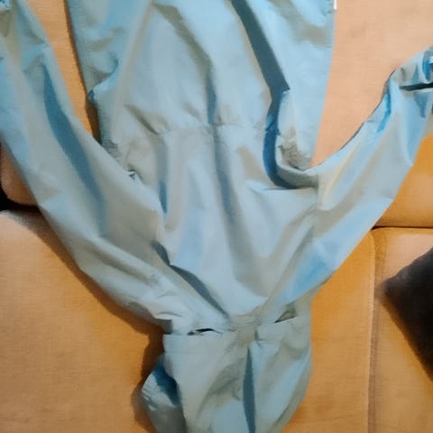 Polarn O. Pyret toppatakki. Muuten hyvässä kunnossa, mutta lapsi vetänyt takista, joten takin koukku on lähtenyt toiselta puolelta irti, joten tullut pieni repeämä (näkyy kuvassa). Helppo korjata, mutta meillä ei enään tarvetta, joten seuraavaa odottaa. Huppukin kyllä on hävinnyt leikeissä. :)
