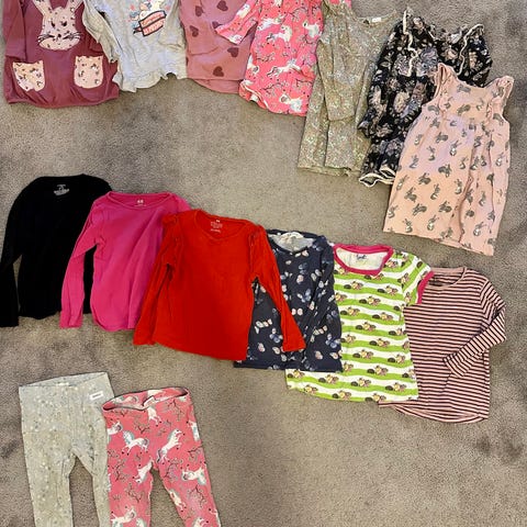 Paljon erilaista käyttö vaatetta.sopii kokoa 92cm käyttävälle.paitaa,housuja,mekkoja,yökkäreitä.