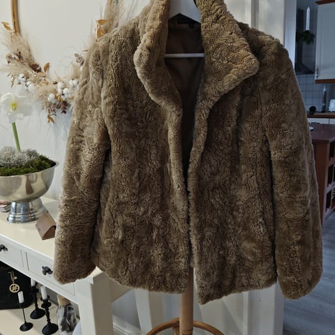 Lämmin vuorellinen muutaman kerran käytetty muodikas tekoturkki.