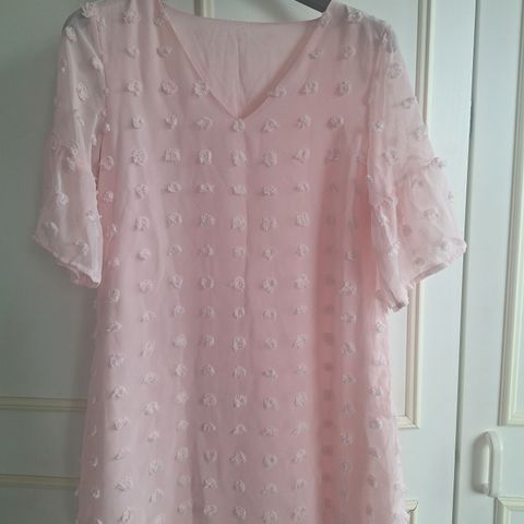 Vaaleanpunainen mekko ruskeilla kuvioilla