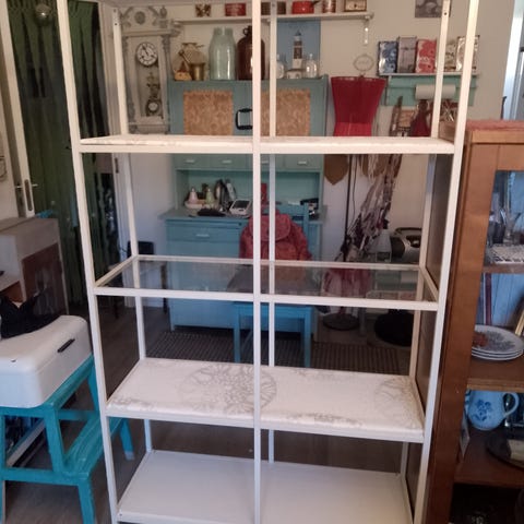 Siisti kukkatasona käytetty täyspuinen hylly. Kirkkonummi. Kuljetus sopimuksen mukaan lisähintaan. Kissatalous