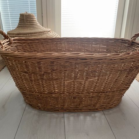 Kuvassa oleva siisti rottinkinen lehtikori. Lehdet saa mukaan jos haluaa.. vain nouto.