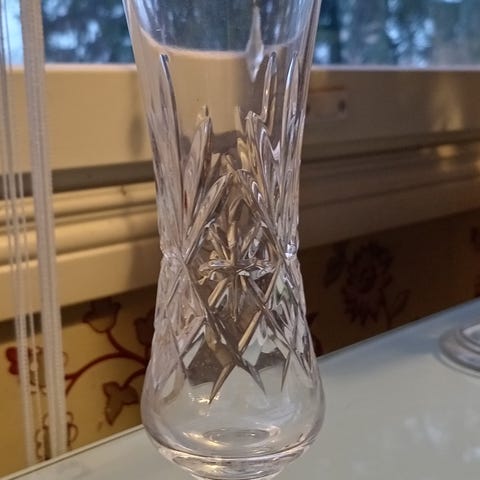 Myydään Riihimäen lasin Orvokki-maljakko. Korkeus n. 16 cm. Sisähalkaisija alempaa maljakosta n.10 cm ja aivan yläreunasta n.19 cm. Ehjä ja hyväkuntoinen. Lähetyskulut lisäksi, mikäli lähetetään.