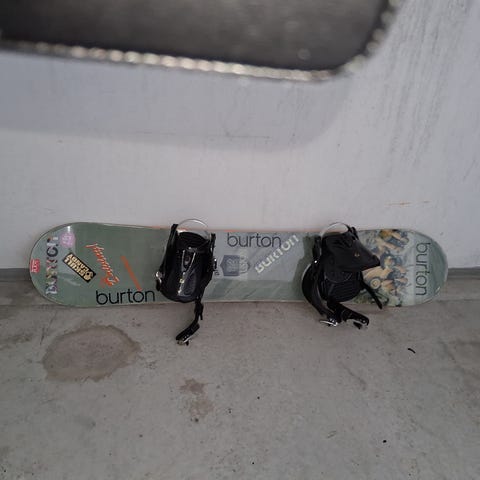 Kaksi kautta laskettu lauta ja siteet, pohjassa normaalia kulumaa, kantit ehjät, siteet kaikin puolin toimivat. Tässä toimiva lauta aloittelijalle sekä edistyneellekin.