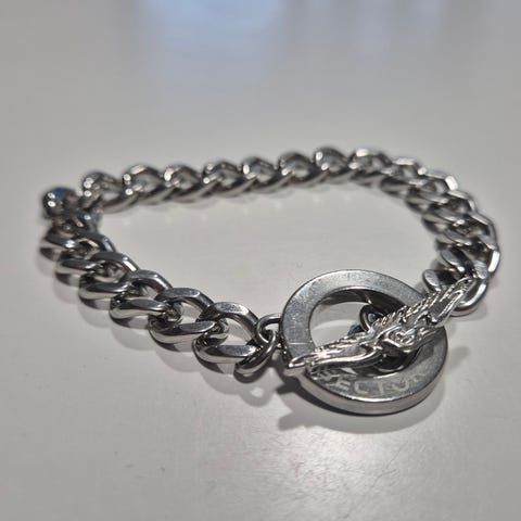 Faith musta rannekoru, valmistettu teräksestä. Rannekoru koostuu suorakaiteen muotoisista osista, joissa on kiiltävä musta pinta. Keskellä on metallinen yksityiskohta, jossa lukee "FAITH". Sopii käytettäväksi miesten tai naisten asusteena.