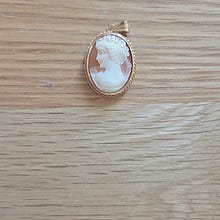 Hopeinen camee-rintaneula, jossa on kaiverrettu naishahmon profiili. Rintaneulan kehys on hopeaa, ja se on varustettu kiinnitysnastalla takana. Sopii asusteeksi erilaisiin vaatteisiin ja kokoelmiin.