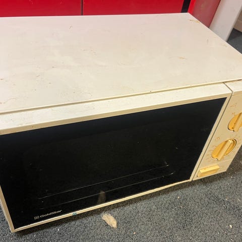 Sisältää pyörivän lasialustan ja mekaaniset säätönupit. Tarkka ajansäätö-rulla ei toimi kunnolla, mutta nappia painamalla saa aina +30s per painallus. Tehonsäätö, max 850w. Sulatustoiminto. Mitat: Leveys 50,5cm, syvyys 40,5cm, korkeus 28cm.